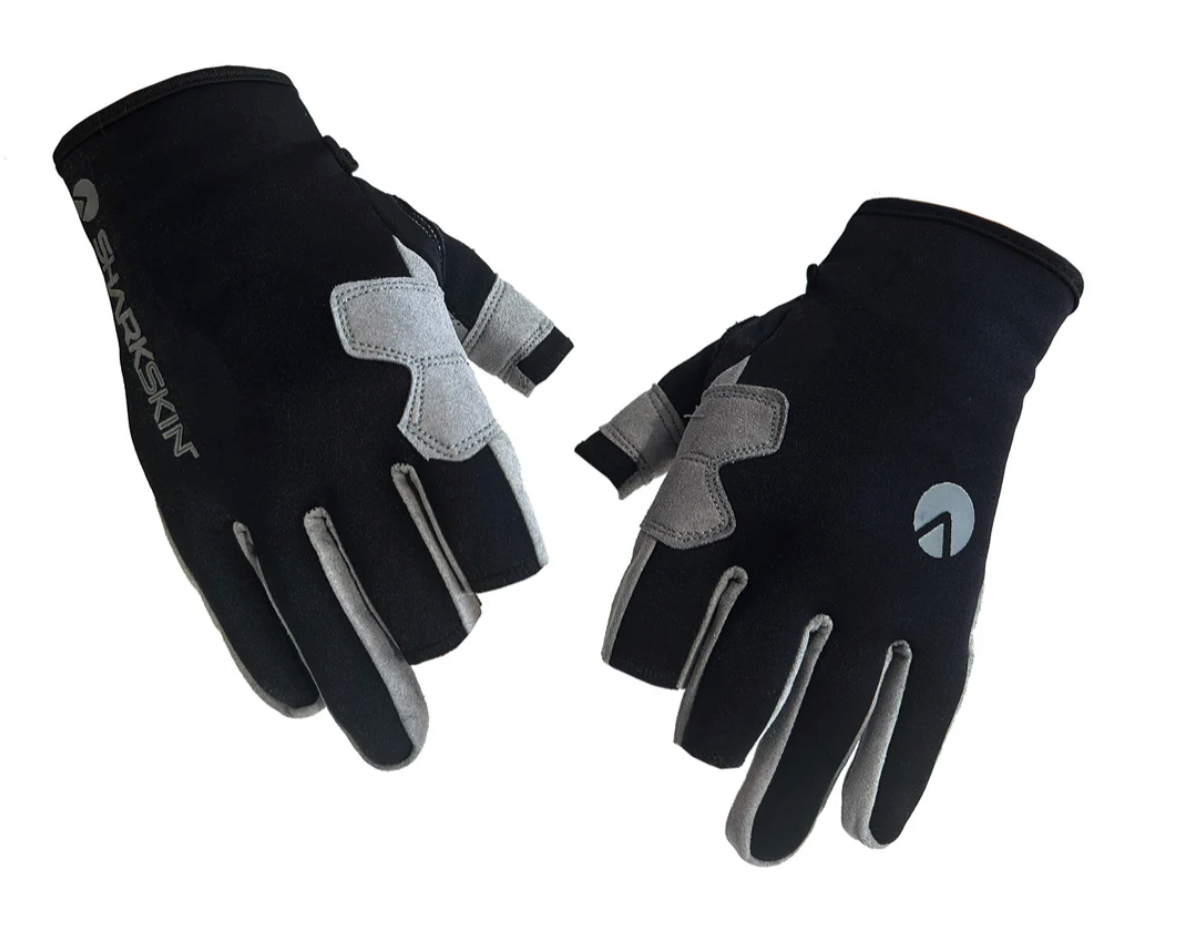 The Sharkskin Heavy Duty Watersports Glove has a 2 layer Amara palm and extra reinforcing on the inside of the thumb and over the top of the forefinger. Perfect for handling ropes, intense jigging for fish, and other water sports activities where you want extra protection from abrasion as well as the cold.
